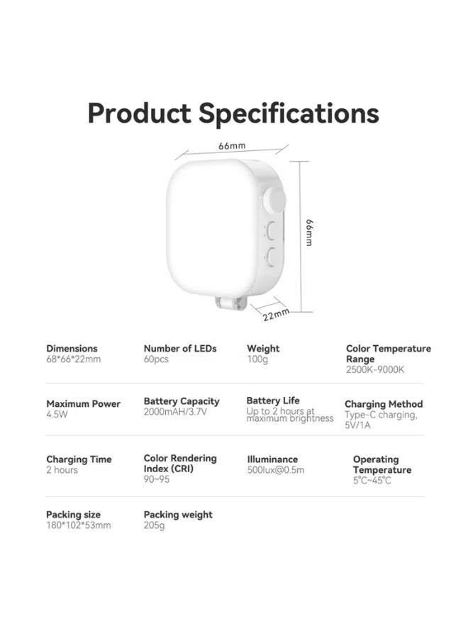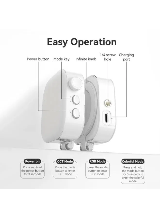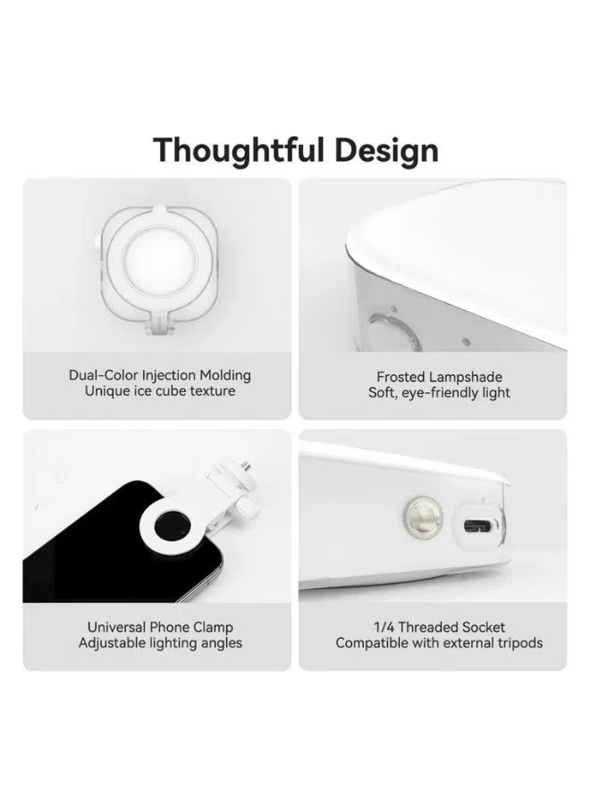 قم بتحسين جودة المحتوى باستخدام مصباح أناقة المغناطيسي مكعب الثلج، وهو ضوء فيديو RGB مدمج مصمم لصناع المحتوى. يتميز بـ 60 مصباح LED عالي الجودة ودقة ألوان +CRI95 مع إضاءة قابلة للتعديل من 2500K إلى 9000K لتوفير إضاءة احترافية للفيديو والصور والبث المباشر ومكالمات الفيديو. بفضل التثبيت المغناطيسي المتوافق مع MagSafe وتصميم المشبك يمكن تثبيته بسهولة على الهواتف أو اللابتوبات للحصول على إضاءة مثالية في أي مكان.